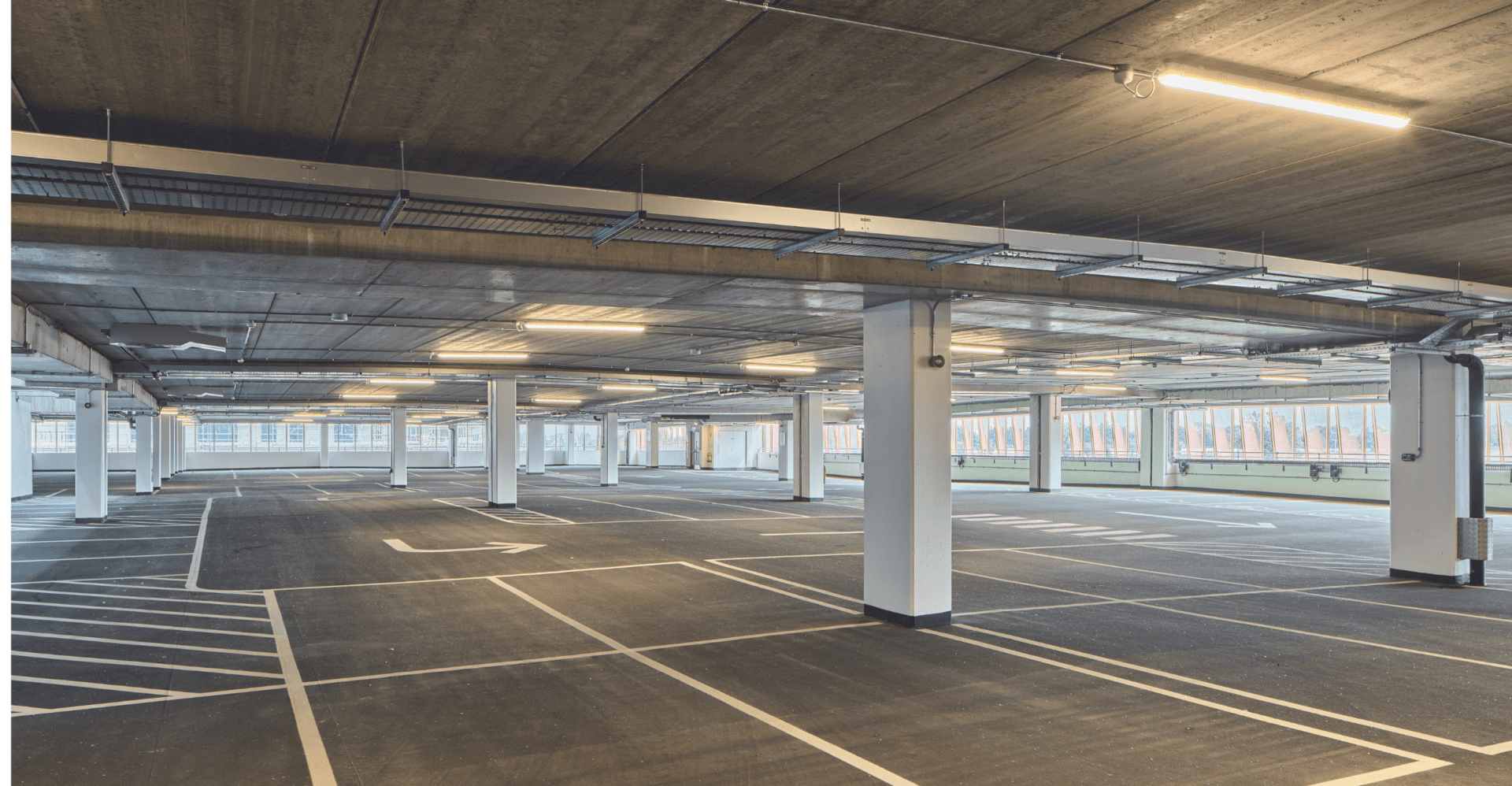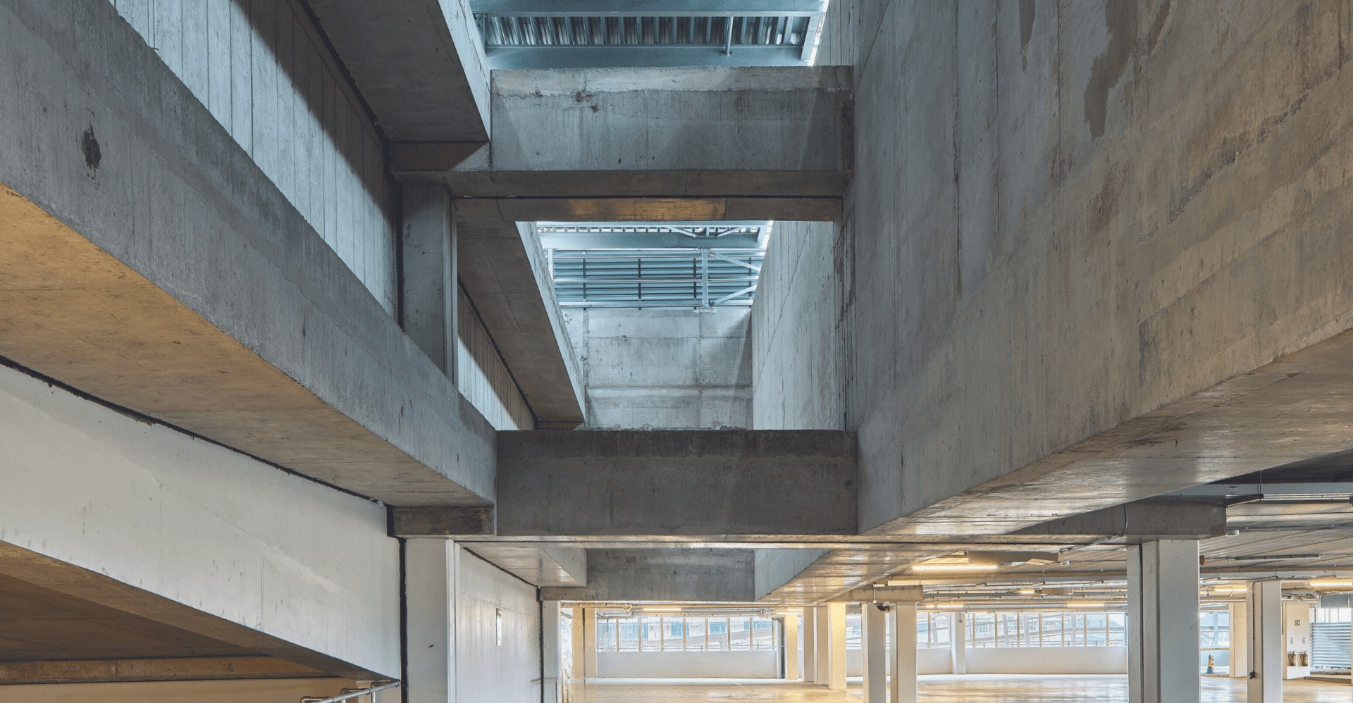 The three-storey car park with 14 metre span precast concrete floor slabs and Grapel perforated metal façade, is accessed from Station Road by ramp at ground floor level which extends to carparking on first, second and third floor levels. The presence of ground gas in the vicinity of the site required installation of a ground gas membrane throughout the enclosed retail spaces on the ground floor.